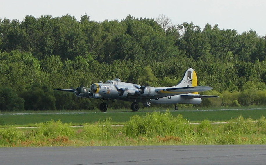 B-17 afficianados may notice that the nose is heavily modified and the cockpit is moved back by forty-two inches to acommodate the turboprop engine. P&W would take her up to altitude, fire up the turboprop, shut down the four main radials, and feather their props. When they were finished with her, P&W donated her to a museum in New England which hoped to restore her to her former condition. That turned out to be far too expensive for the museum to afford. Eventually she was broken in half when a tornado dropped an adjacent aircraft on her back. At that point, an association was formed in Georgia to buy her and restore her to original and flying condition. In 2004, after three million dollars worth of restoration, she returned to flight. She has spent the last four years on the road as a traveling memorial to the Eighth Air Force and to a particular aircraft, the original Liberty Belle, offering flights to anyone who can pony up $430. That may seem steep for a thirty-minute flight, but a sixty-year-old plane of this size is incredibly expensive to operate with passengers. Liberty Belle returned from a month-long European tour three weeks ago. Her crew chief told me her fuel stop in Newfoundland cost $10,000.