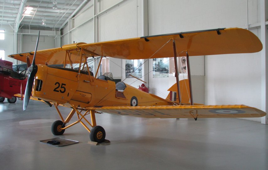 Next to it is a deHavilland DH82 Tiger Moth primary trainer from 1940, built by the Morris Autombile Company. Though the design dated from 1932, notice the similarities between it and the later Chipmunk.
