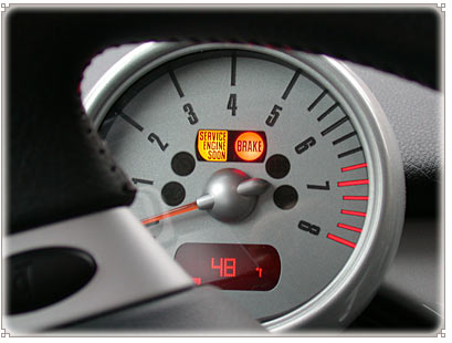 04/28/06 I can now top the open motoring record mentioned below: Yesterday I took the Rocket into the dealership for it's yearly oil change and a few little tweaks (more on that above). Today I'm driving a MINI Cabrio loaner from Checkered Flag MINI. Now when you've got the chance, you've GOT to drop the top. So I did. The temp was 49' but I was prepared with a leather jacket and the heated seats. What a stinkin' blast! I can see what people like about the cabrio.