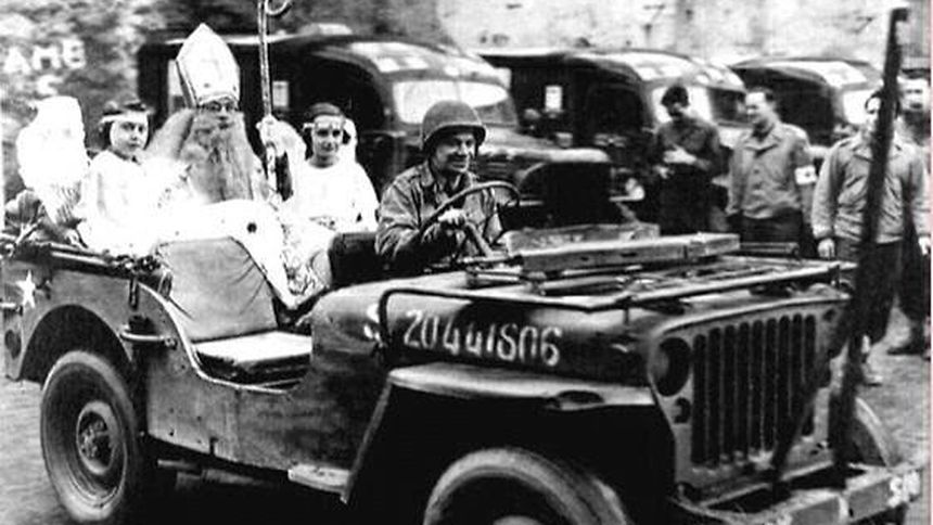 As the American soldiers entered the town they could see how beaten down the populace was. Corporal Harry Stutz, a cryptographer, was talking to a resident and discovered that Wiltz hadn’t had a St. Nicholas Festival during the entire occupation. Being that the region was highly devout Catholic, this had been a terrible blow. Stutz convinced the unit’s mobile kitchen to make doughnuts and then convinced the soldiers to donate candy and chocolates from their care packages that had just caught up with them. He secured food supplies so that the nuns in the local convent could cook a feast. Finally, he convinced a buddy of his, corporal Richard Brookins, to don the local Catholic priest’s vestments and a beard made from rope and stand in for St. Nicholas. They formed a procession and drove through the streets on a jeep, stopping to bless the children and hand out sweets. Eventually they finished off with the feast cooked by the nuns. They gave the town of Wiltz back their Christmas.