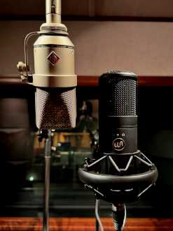 With my baritone voice, I found the two microphones to be remarkably similar in the midrange. Though it is a very faithful, flat microphone, because of its flat high end and slightly suppressed up-mid response, the TLM might be considered a touch "boxy" by those who aren't comfortable with using EQ. The WA indeed adds some more "air" to the subject than the TLM offers and a certain upper end "rip" that might help a male voice cut through. Because I often end up adding air to voices via EQ when using the TLM, the WA seems like it could eliminate that need. The upper-end sheen is quite smooth and pretty and isn't strident. If the subject is sibilent in the 7-15k range, that will, of course, be emphasized by the brighter upper end.