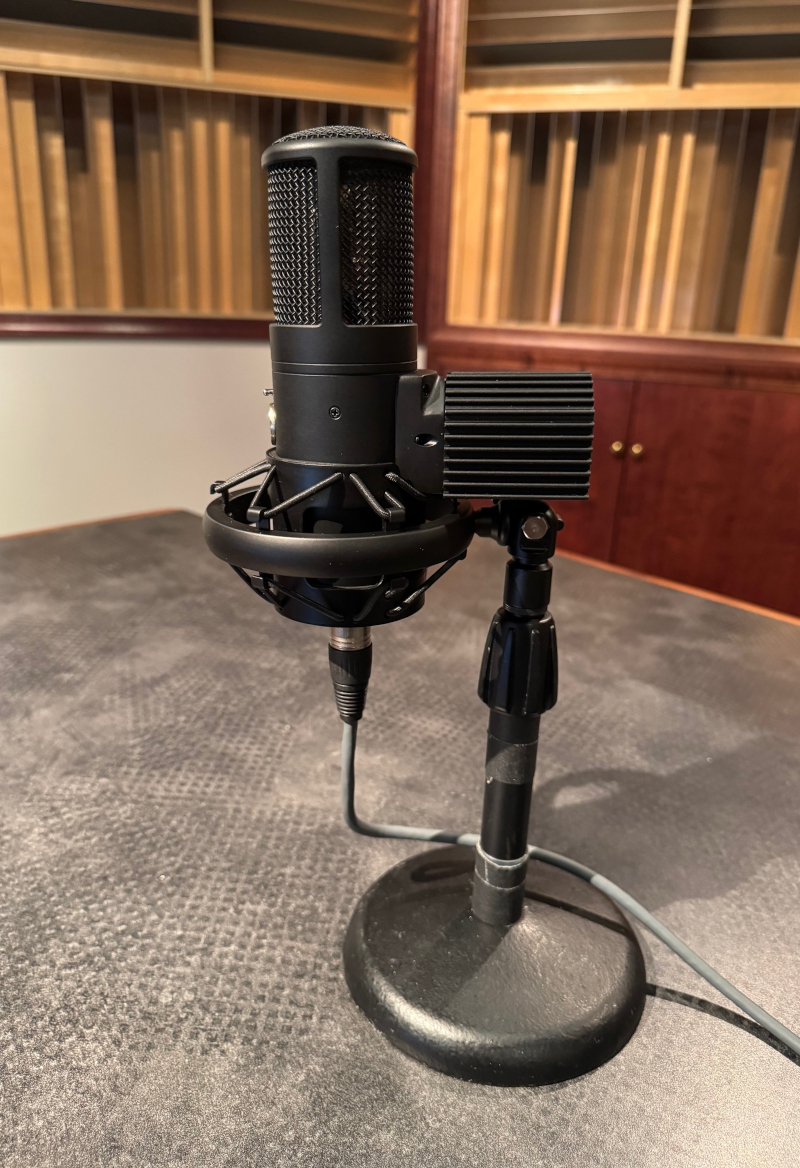 Hilariously, for those needing to "fashion match their grill", there is a gold-tone version of the mic available as well. Um, yeah. After experimentation, the designers at Warm Audio looked for ways to reduce the complexity of the Sony tube assembly that features a tube housing, a Peltier cooling chip and a separate finned heat sink. They did so by combining the tube housing with a finned heat sink, and felt that they achieved equivalent cooling performance. Looking at it, I'd venture a guess that the WA design is physically sturdier than the Sony system. The final result is a slightly smaller mic in all directions. There's heft to the mic, but not excessive weight. The separate power supply box is sized about the same as the familiar Neumann lunchbox power supplies. It is sturdy and well-ventilated and sports a lovely blue jewel power light. While the Sony supply is tube-based and large enough that it can't be fit into Sony's carry case, the WA supply is solid state and can. Everyone I've read including detractors agree that this change has no effect on the sound of the mic.