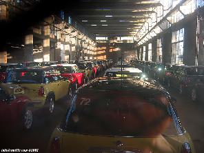 A MINI Cooper S on the Assembly Line, about to receive its dash.